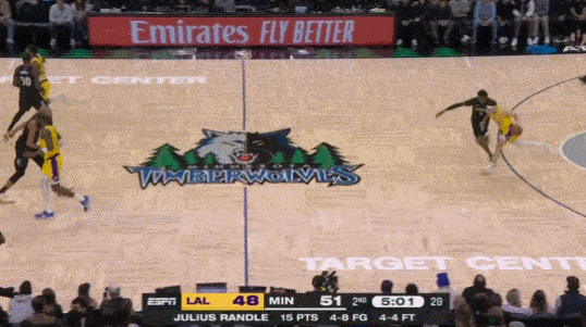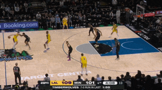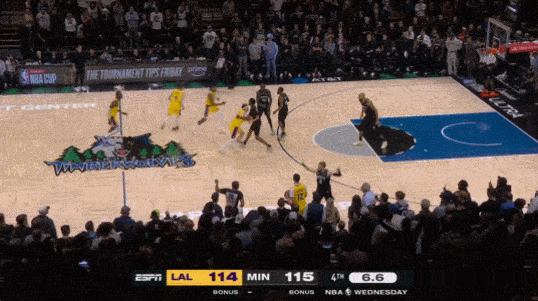 然而从第三节末开始,湖人不断被追分,20分领先在不到15分钟内就被侵蚀殆尽,直至第四节剩下10秒兰德尔上篮打进后,森林狼已经以115-114反超湖人,看似,湖人马上要吞下一场败仗。